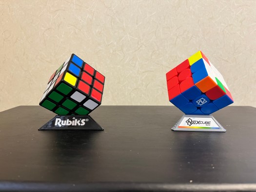 ただ、セクシームーブと逆セクシームーブが実は同じ動きであることは2つのキューブを回してみて初めて理解できました。最初に買った株式会社メガハウスのルービックキューブと後から買ったMoYu社のネクスキューブで次のようにやってみました。