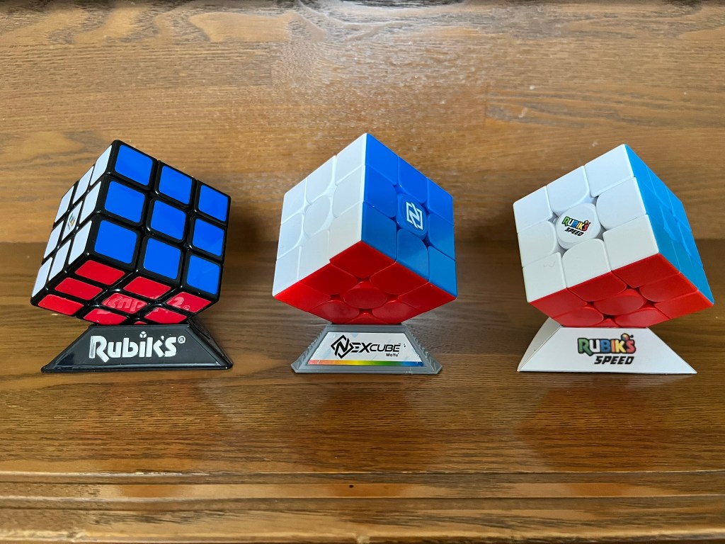 といった感じです。スピードキューブには台座が付いていなかったので紙で自作しました。やはり回しやすいので、ついスピードキューブを手に取ってしまいます。